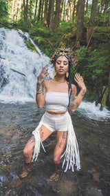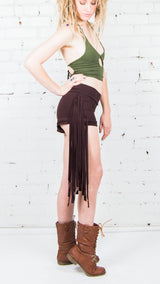 Umba's latest Fringe Shorts are flirty booty shorts with long fringe on either side, making them a fun and playful option for those hot summer days. Perfect for a night out dancing, these shorts add unique flare in your outfit. They also look great paired with our Fringe Crop Top. Definitely a must have for music festivals, a day at the beach, or Burning Man.