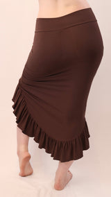 Slip into effortless elegance with our stunning mermaid skirt. Designed with a smooth, body-hugging silhouette, it highlights your natural curves while offering comfortable stretch for all-day wear. The skirt flares into a soft, flouncy ruffle hem that adds a playful, feminine touch — perfect for dancing, date nights, or elevating your everyday style.