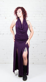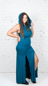 This gorgeous dress is comfortable yet elegant. This new Umba design features an open back, a cowl neck, and a double slit panel skirt. The cowl neck allows for a flattering loose fit for all sizes. Perfect for everyday wear, a night out, or a music festival, this dress is comfort and style combined, giving you the ultimate hippie-chic look.