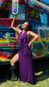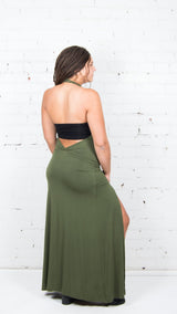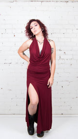 This soft and comfortable Umba floor length dress has an open back and cowl neck front. Featuring a stylish slit up the leg, this dress allows for an ease of movement and a sassy flair. Perfect for dancing at a music festivals or a cocktail party by the beach, this trendy dress will have heads turning. A flattering look for women of many shapes and sizes, this dress is made from our wrinkle-resistant modal blend fabric and packs down great for travel.