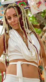 The Umba Shapershifter Shirt is the definition of hippie-chic. The velvety soft stretch fabirc accommodates a variety of sizes, and is made from our modal blend wrinkle-resistant fabric. The cowl neck even doubles as a spacious hood. With a tie in the back we're positive you'll get the best fit for your form. Pair with the Bell Sleeve Shrug for colder evenings, or the Madame Maxi for a complete look.
