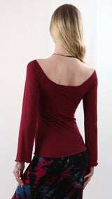 The Kalahari Long Sleeve is a sleek, feminine essential with an effortlessly romantic feel. Designed with a flattering off-the-shoulder neckline and softly flared sleeves, this top drapes beautifully while contouring the body. Lightweight and stretchy, it’s the perfect piece for layering or wearing on its own for an elegant, minimalist statement.