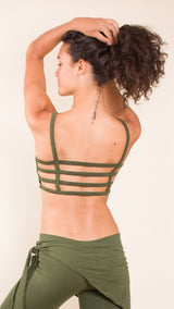 Umba's Strappy Bra is a must-need basic for your wardrobe. It can be worn on its own or layered with a cardigan for a great summer look. The back features strappy, breathable cut outs, perfect for a hot summer festival or packed concert. Pair with same color Umba Fringe Shorts for a onsie look. Also a great option for yoga, performance or dancing the night away.