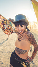Umba's Macrame Halter Bra top is fashioned with knotted macrame detail above the bust to the neck. The halter top ties behind the neck and in the back giving you a personalized fit. Great summer item and great for layering.