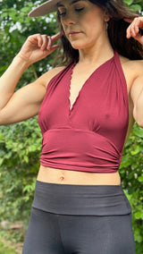 Striking and effortlessly chic, the Pyramid Halter is designed to elevate your wardrobe with a flattering, feminine edge. Featuring a soft plunging neckline with a subtle scalloped detailing, this top offers a beautiful blend of comfort and allure. The highlight? A unique circular accent at the back that gathers the straps, creating a statement look from every angle.