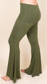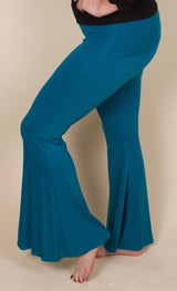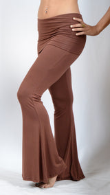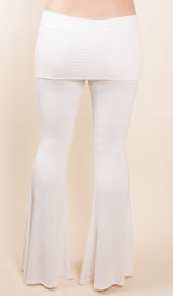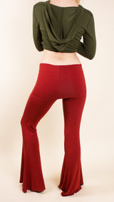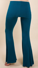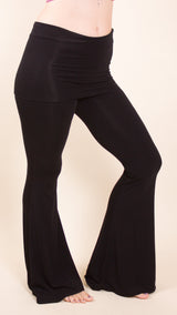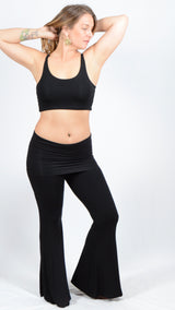 These Umba's original Fold Over Flare pants are great for yoga class, romping in style at a music festivals, or dressed up for a night out. The waist band can be rolled up for a high-waisted look or down, transforming the extra fabric into a layered skirt. A versatile staple in your wardrobe, these pants are made from a super soft viscose blend that molds to your shape, and allows for a free range of motion. A must have for that hippie-chic look!