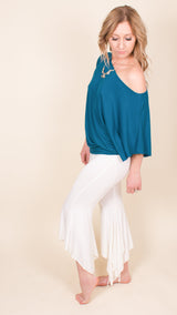 Comfortable and versatile, these Umba Mermaid Capris a fashioned with a fold over waistband that can be rolled up or down making these fun and fashionable. Fitted down to the knee with a fairy hemline and a velvety soft feel, these are great for special occasions, yoga class, festivals and daily wear. If a mermaid grew legs, these are the pants they would wear.