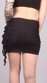 The frill skirt is our take on the perfect mini skirt. It is comfortable and great to dance in. The long frill down the side of the skirt gives it come flare and makes it more interesting then your basic mini. The length is great if you want a mini skirt that you can still move in without having to worry about too much skin showing. Fit is true to size.